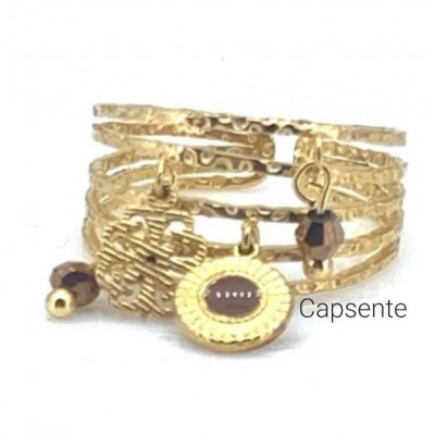 Bracelet 4 joncs différents dorés en acier inoxydable reliés par une médaille. Nous vous proposons de personnalise ce bijou en gravant la médaille. La personnalisation sera à préciser dans la partie message au moment de la validation de votre commande.
