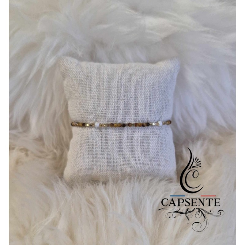 Bracelet sur fil orné de pierres naturelles, de perles d'eau douce et de perles en acier inoxydable.