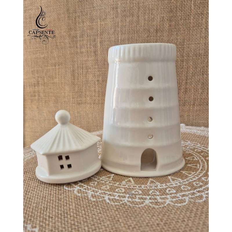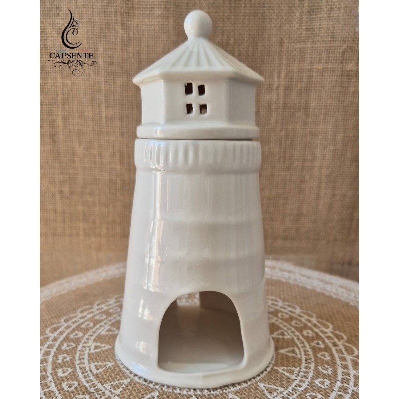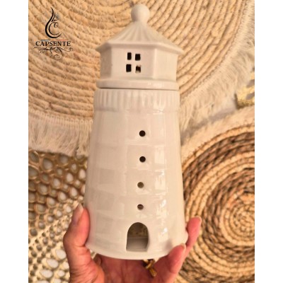 Ce brûleur de cire original, avec couvercle, en forme de phare blanc, présente des détails subtils qui raviront à coup. Lorsqu'il n'est pas utilisé, il constitue un superbe élément de décoration pour une maison au style nautique. Placez une bougie chauffe-plat 3h en dessous pour créer une ambiance apaisante, en l'associant à des fondants de cire ou à une huile parfumée diluée. Cadeaux et décorations nautiques.