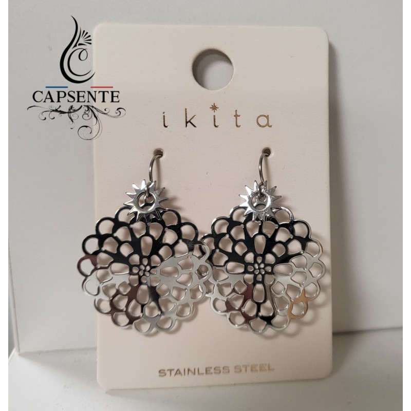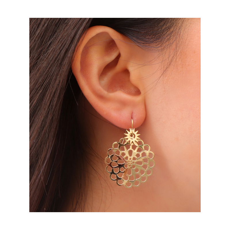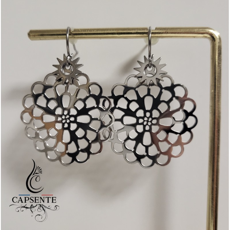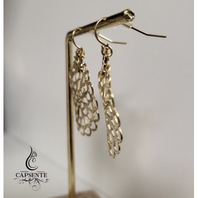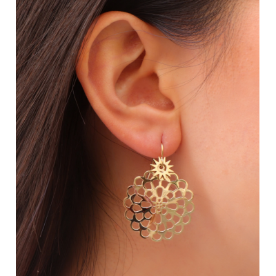 Boucles d'oreilles à crochet motif rosacé. Fermoir tige et sécurité.