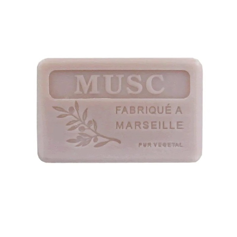 Savon de Provence enrichi au beurre de karité et Musc rajouté à froid.