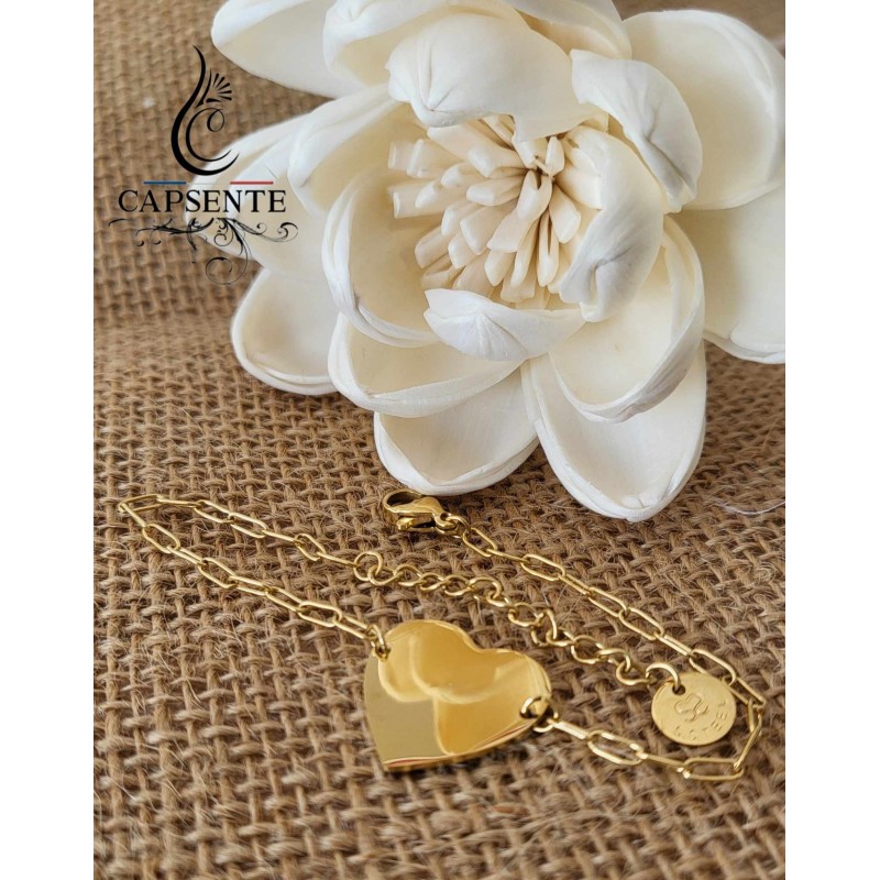 Bracelet doré en acier inoxydable. Nous vous proposons de personnaliser ce bijou par une gravure sur une ou les deux face de la médaille. La personnalisation sera possible jusque 3 mots et sera à préciser dans la partie message au moment de la validation de votre commande.