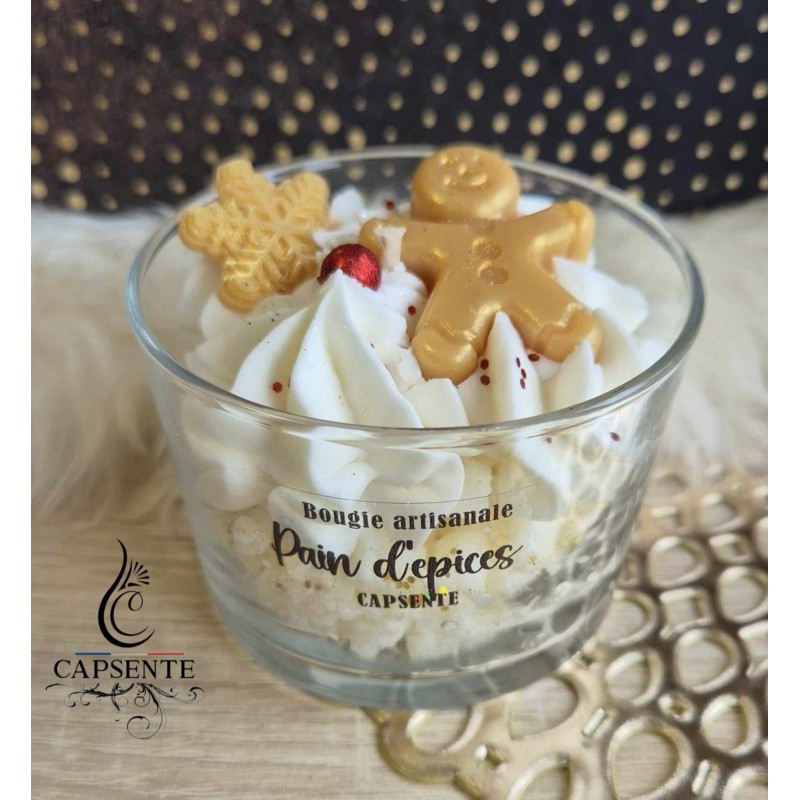 BOUGIE de cire chantilly . Les bougies gourmandes Capsente sont de confection artisanale, composées d’une mèche de coton, de fragrances de Grasse, de cire de soja ainsi que des colorants naturels.
