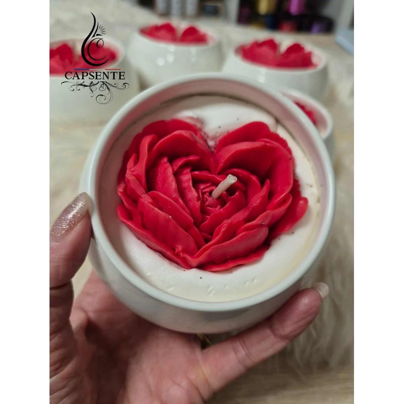 Laissez vous séduire par l'élégance de notre bougie cœur de rose , une création artisanale signée Capsente, Plus qu'une simple bougie, c'est une véritable pièce de décoration qui allie la délicatesse d'une fleur épanouie à la symbolique éternelle du cœur