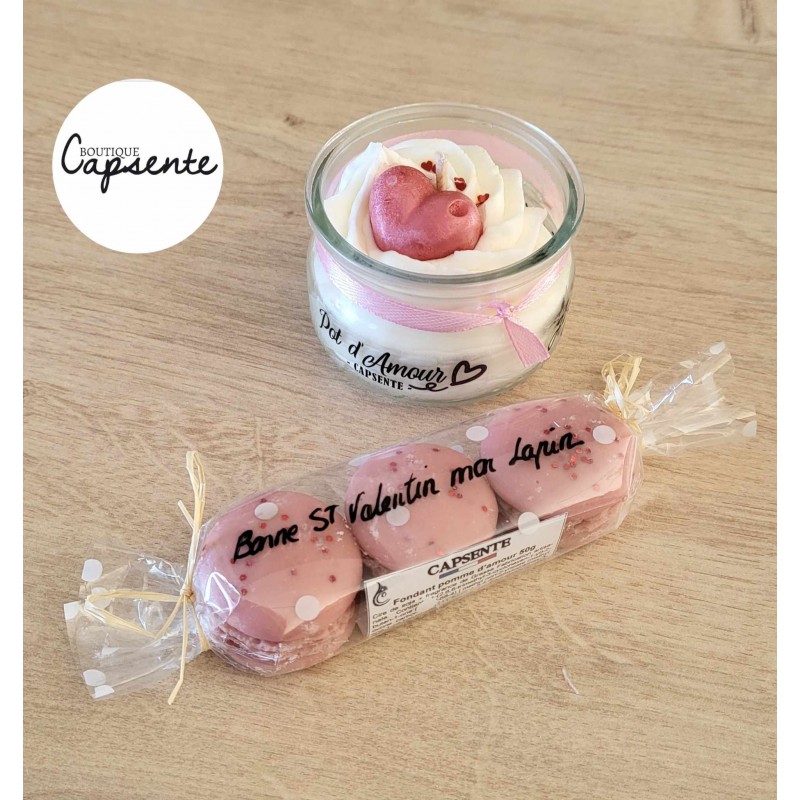 Ballotin de 3 macarons de cire parfumée, senteur pomme d'amour, emballés. 50g