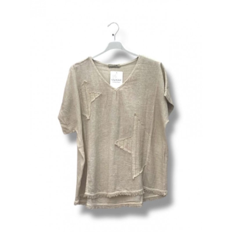 Un haut très agréable a porté avec motifs étoiles en relief. Pince dans le dos.